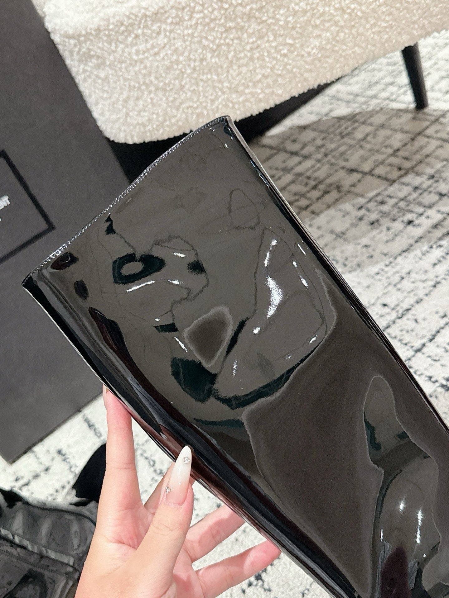 YSL 25S PLATFORM KNEE-HIGH BOOTS 70 MM IN BLACK GLOSSY LAMBSKIN