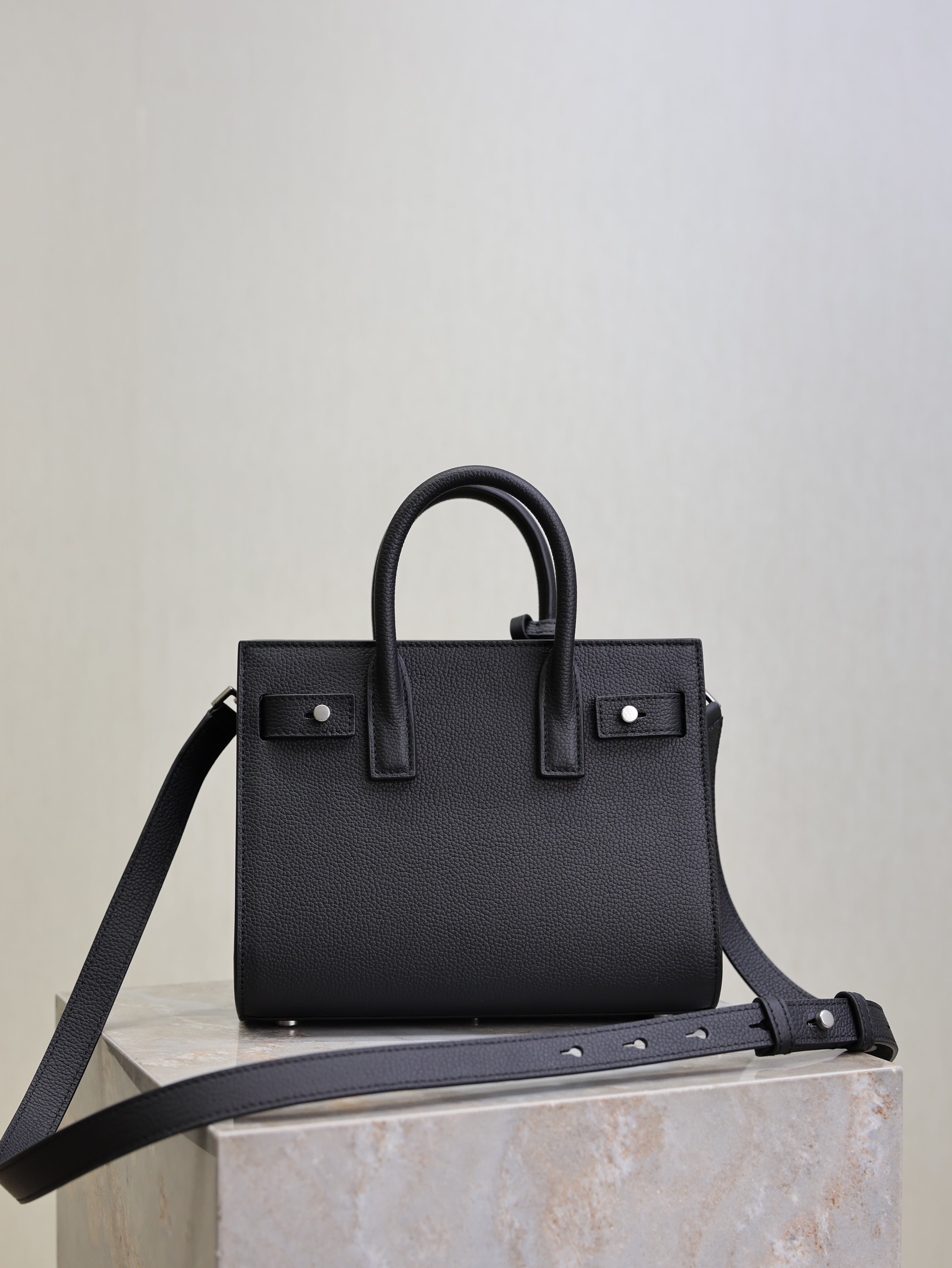 YSL 25S SAC DE JOUR 22 IN BLACK GRAINED CALFSKIN SILVER HARDWRE