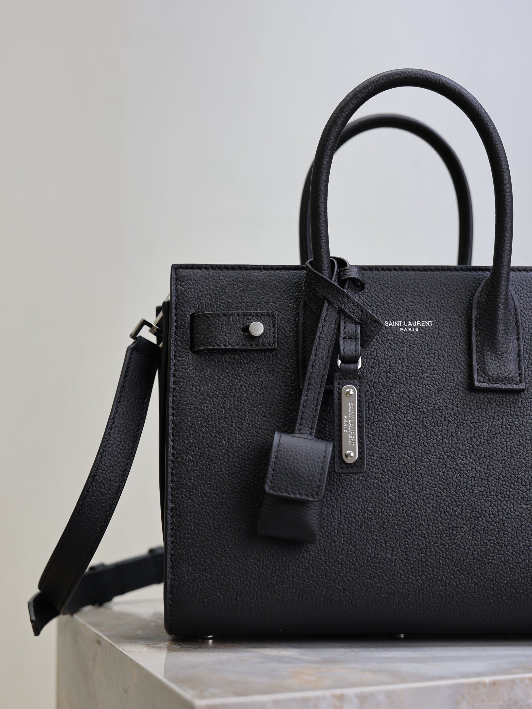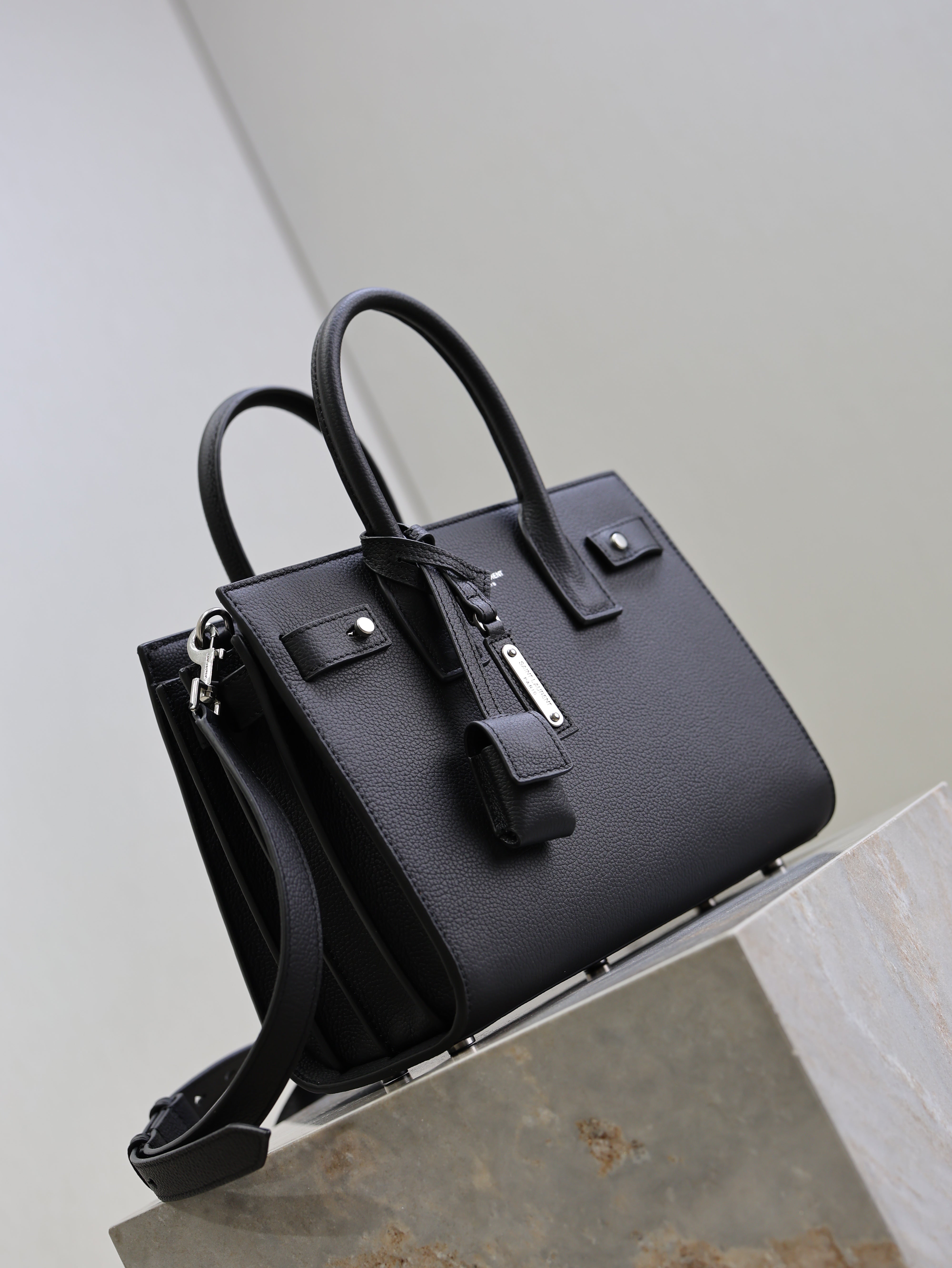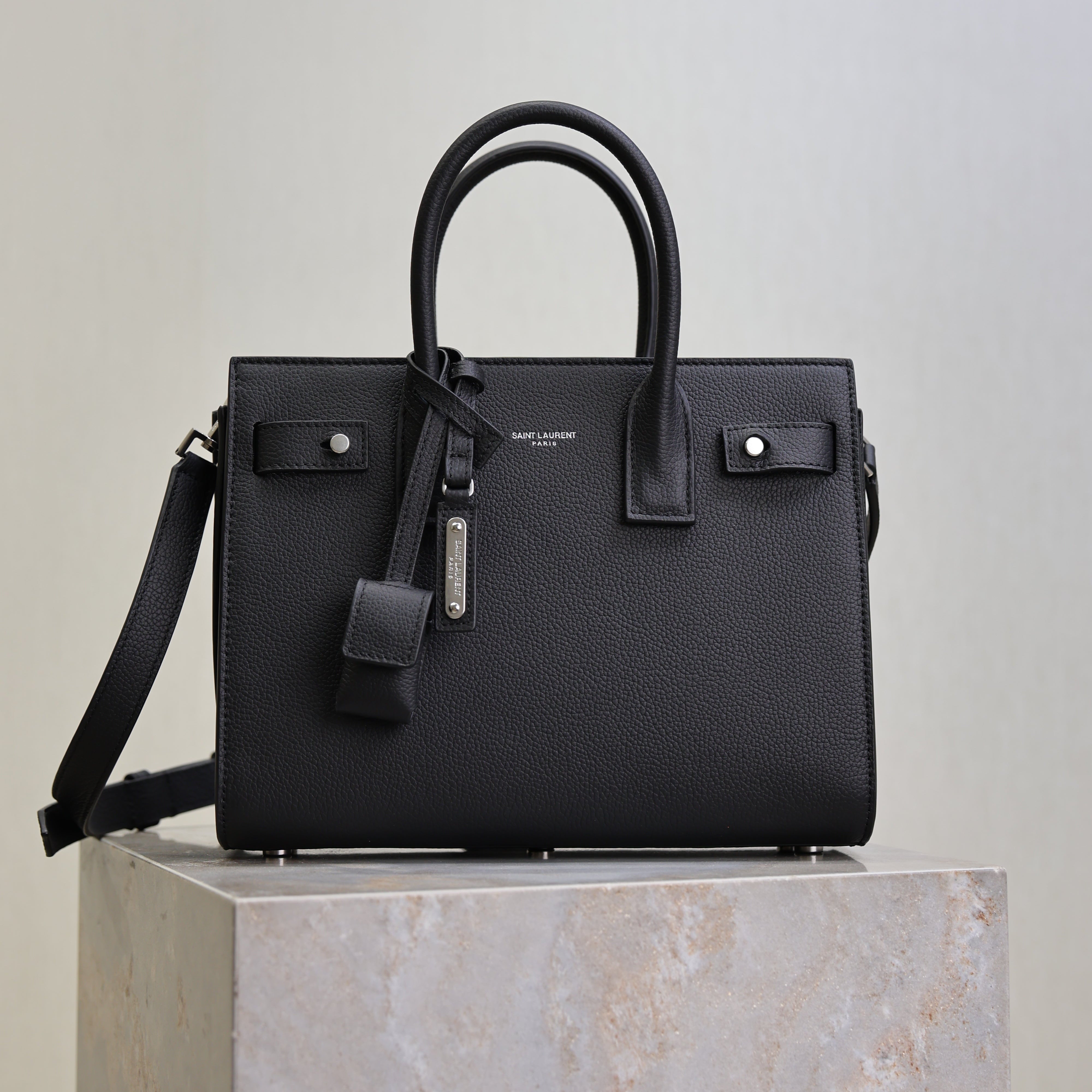 YSL 25S SAC DE JOUR MM 26 IN BLACK GRAINED CALFSKIN SILVER HARDWRE