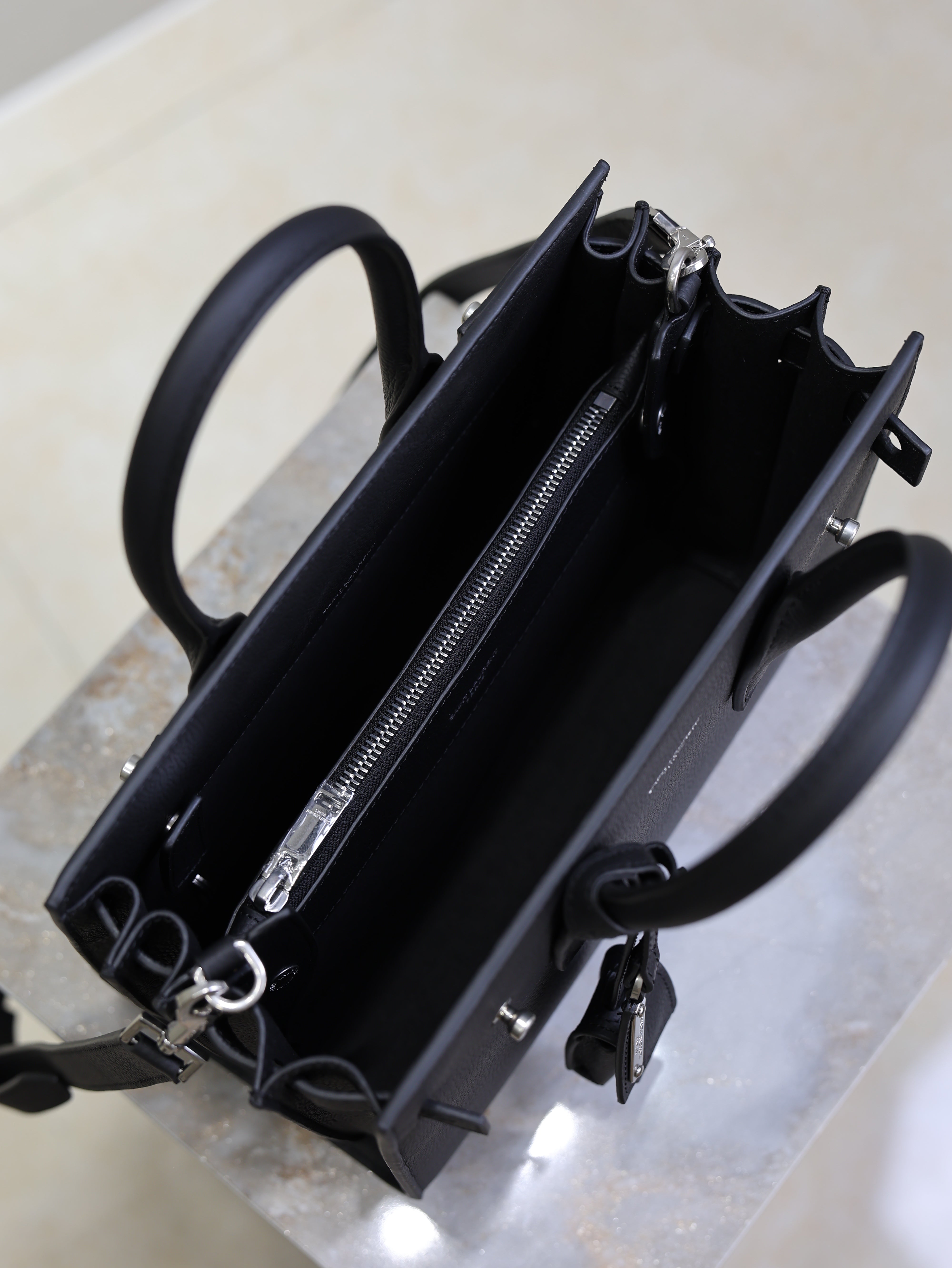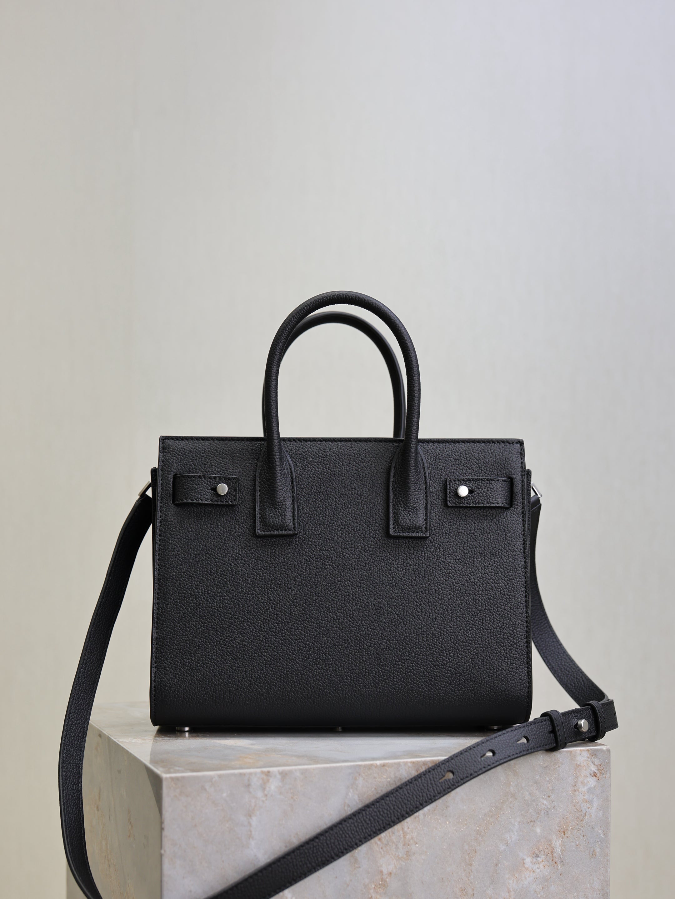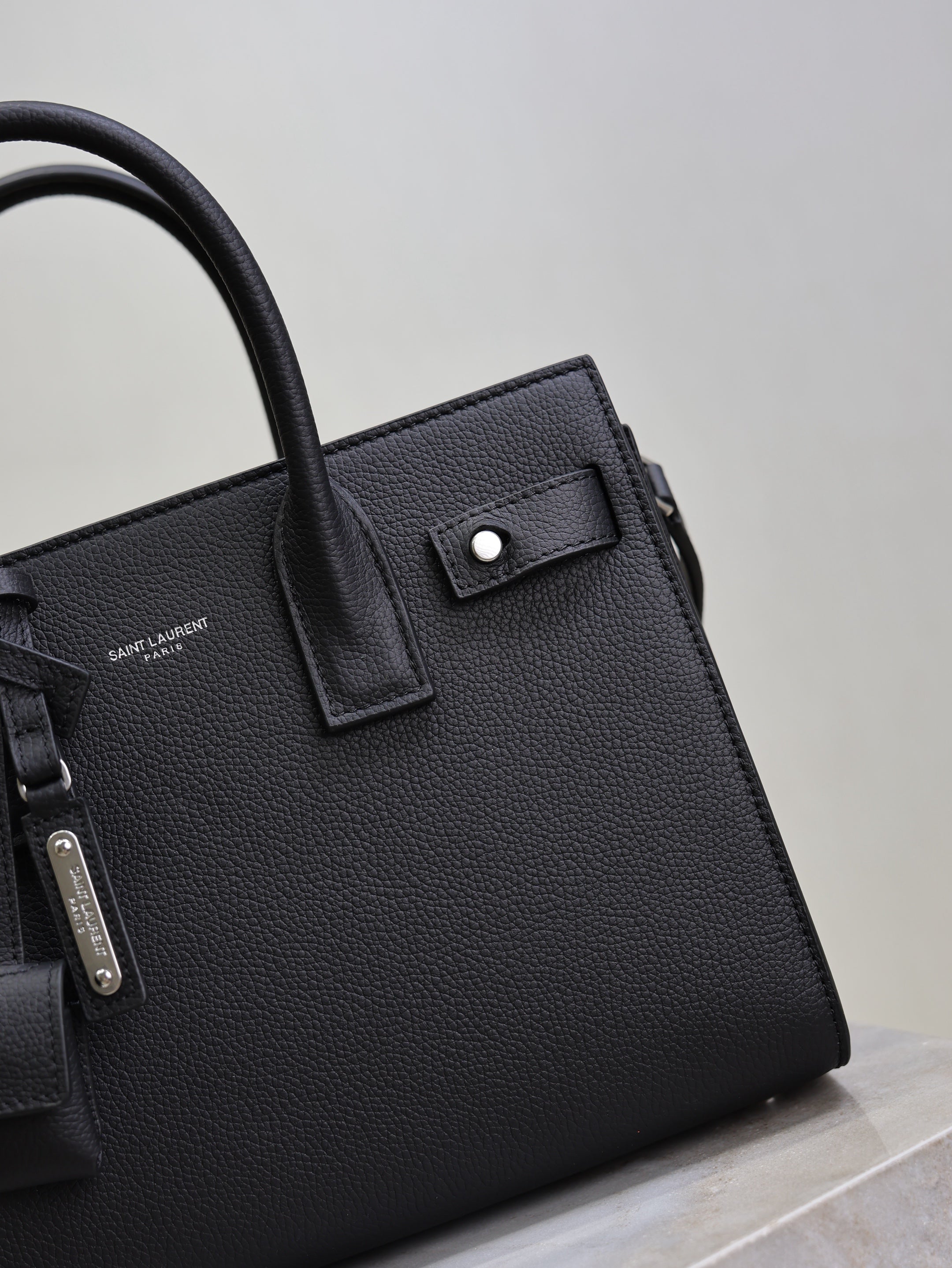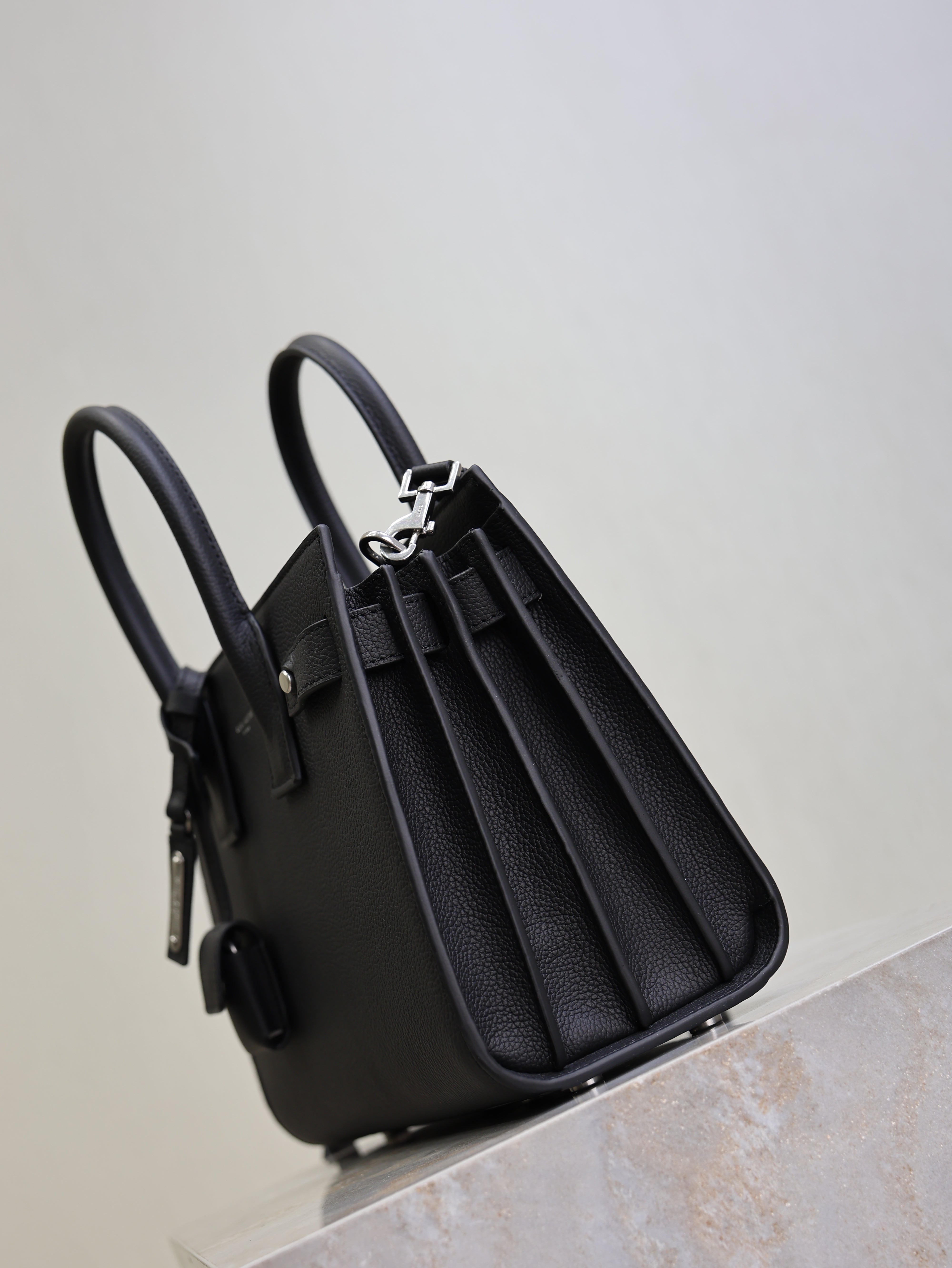 YSL 25S SAC DE JOUR MM 26 IN BLACK GRAINED CALFSKIN SILVER HARDWRE