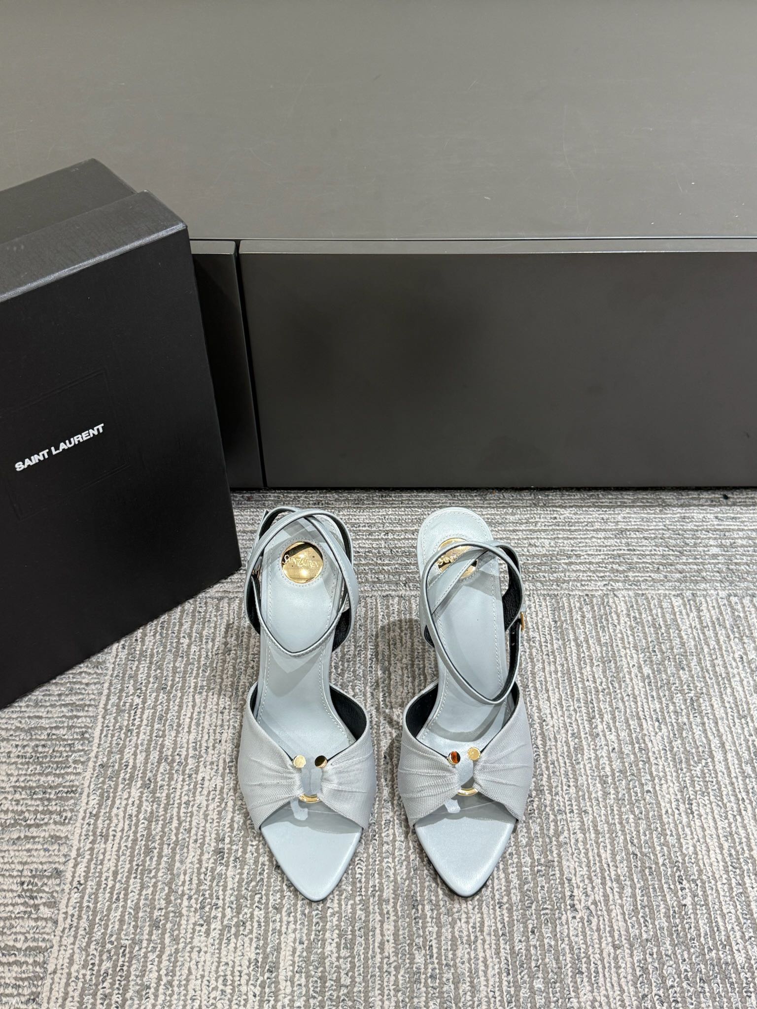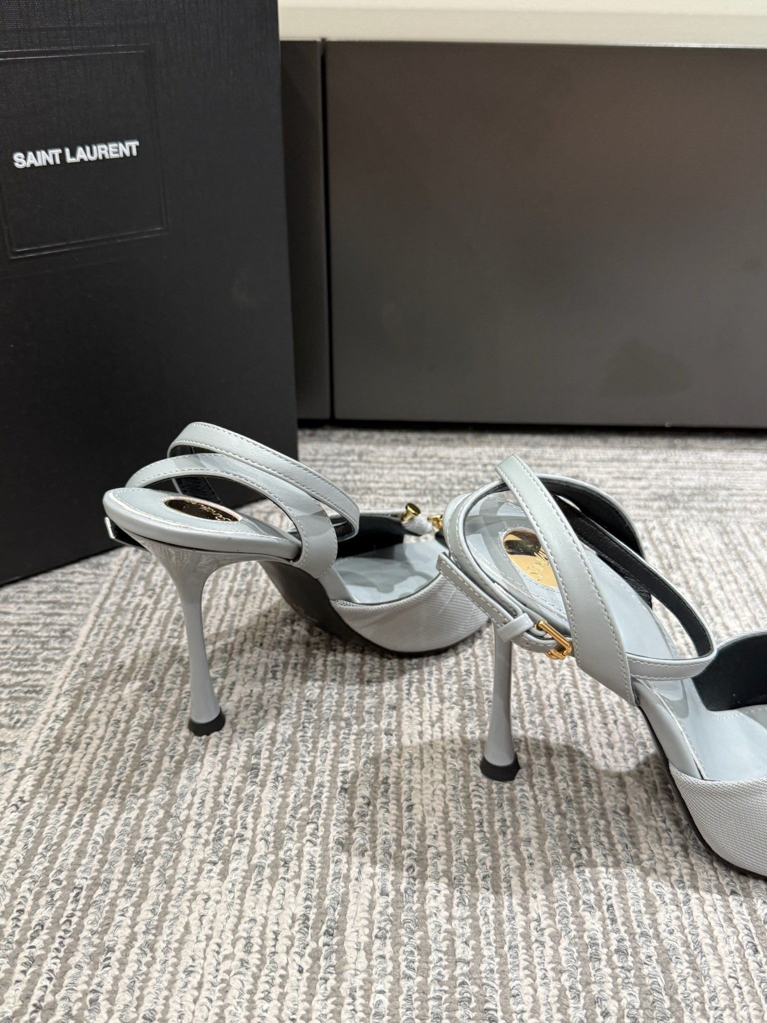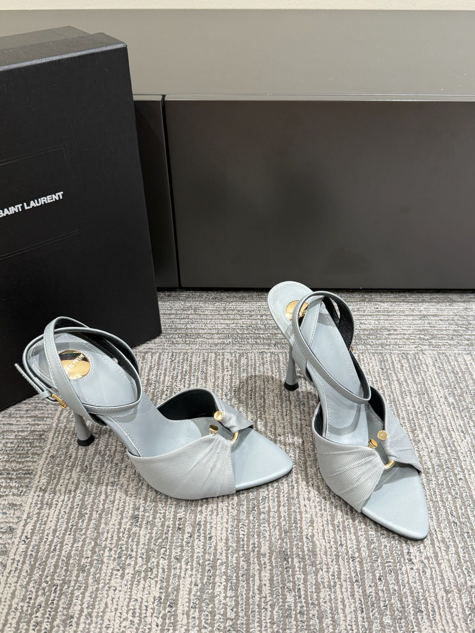 YSL HEELED SANDALS 25S 100 MM IN LIGHT SLATE BLUE LAMBSKIN