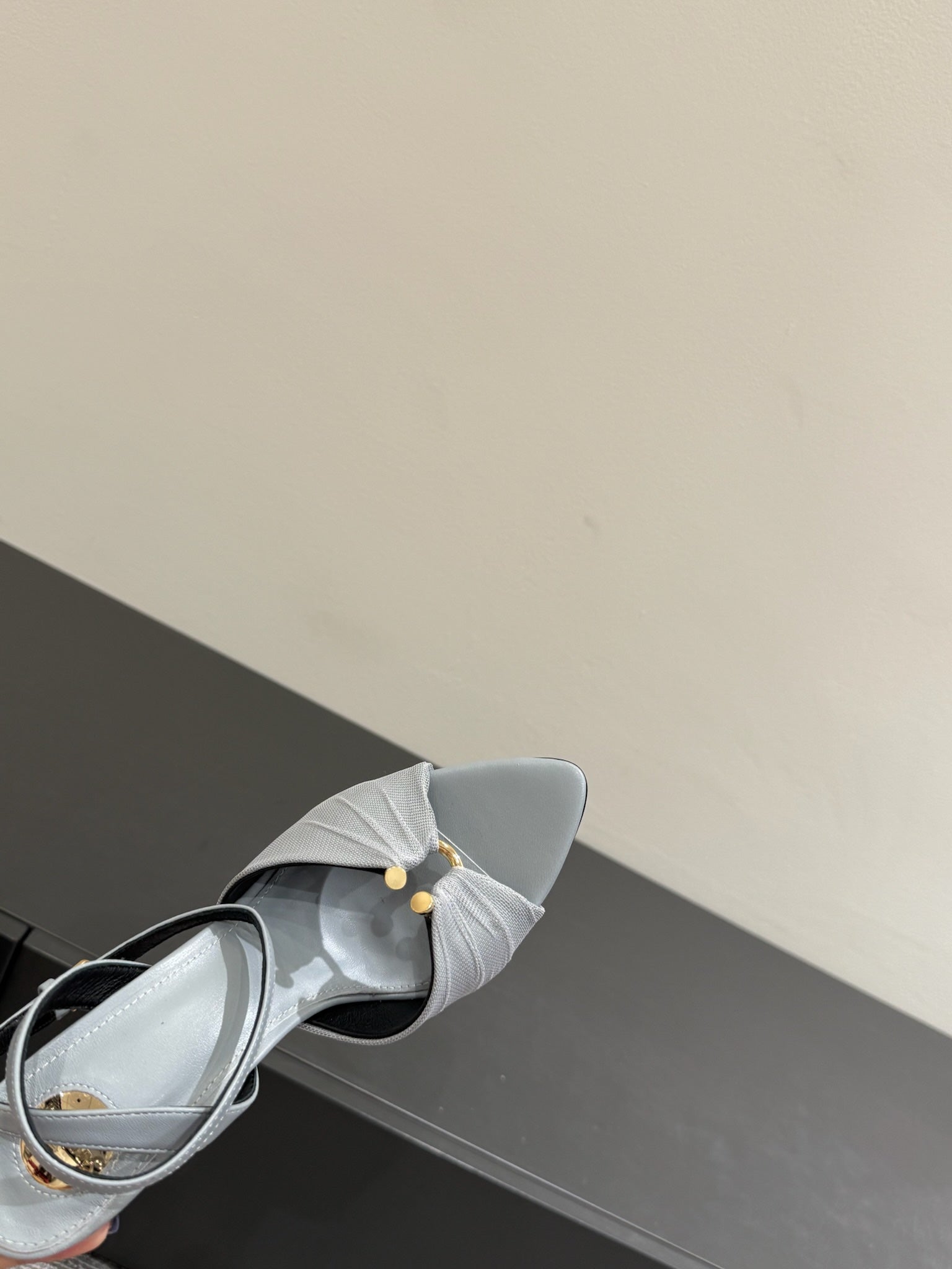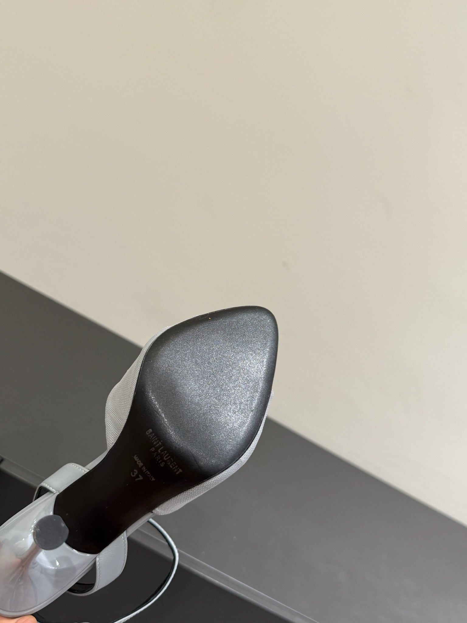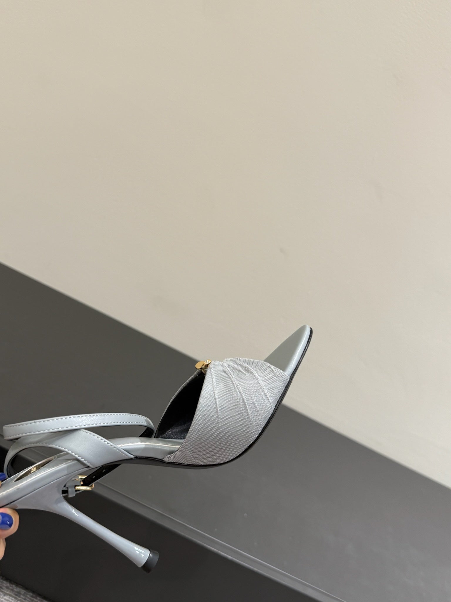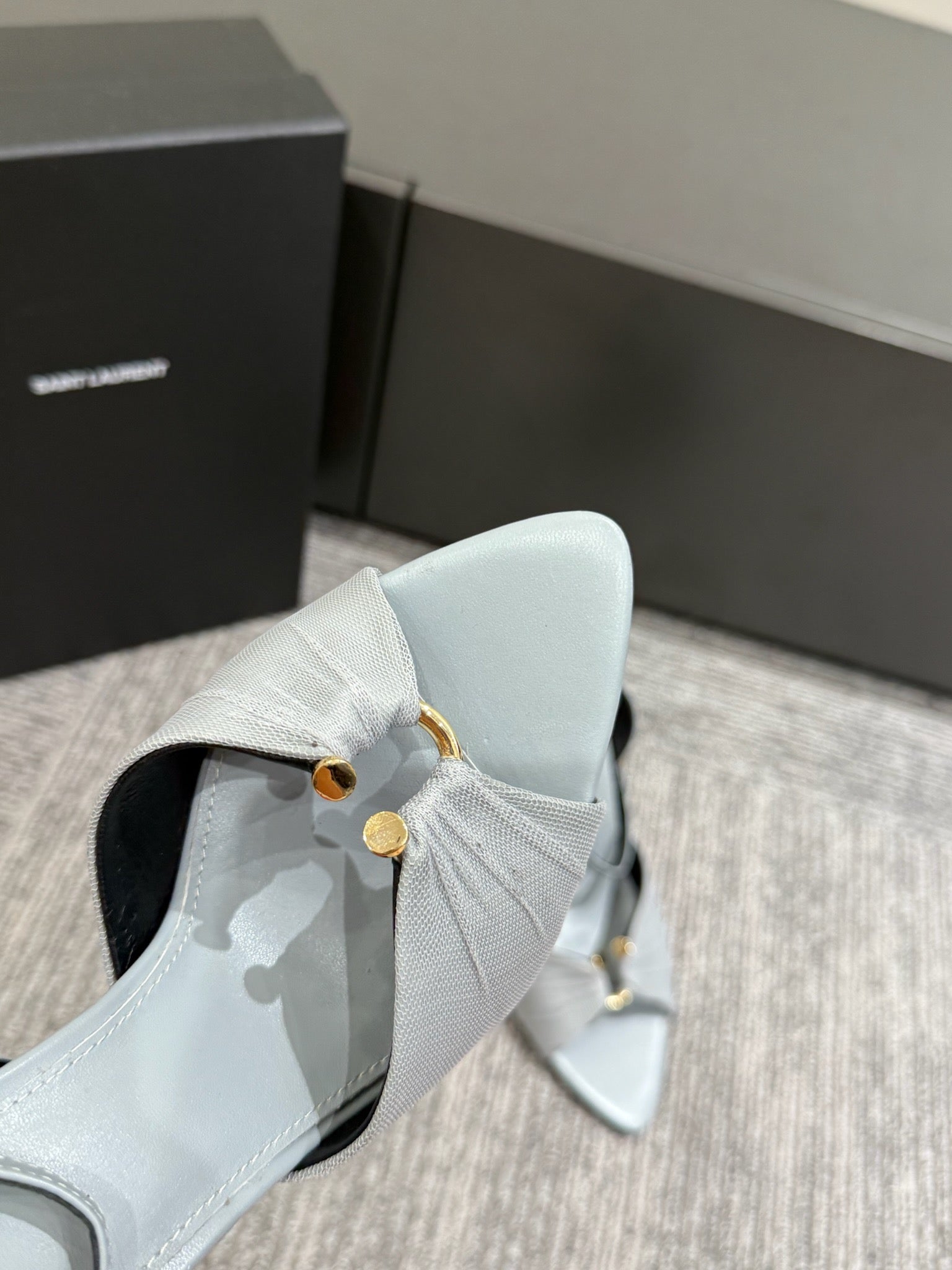 YSL HEELED SANDALS 25S 100 MM IN LIGHT SLATE BLUE LAMBSKIN