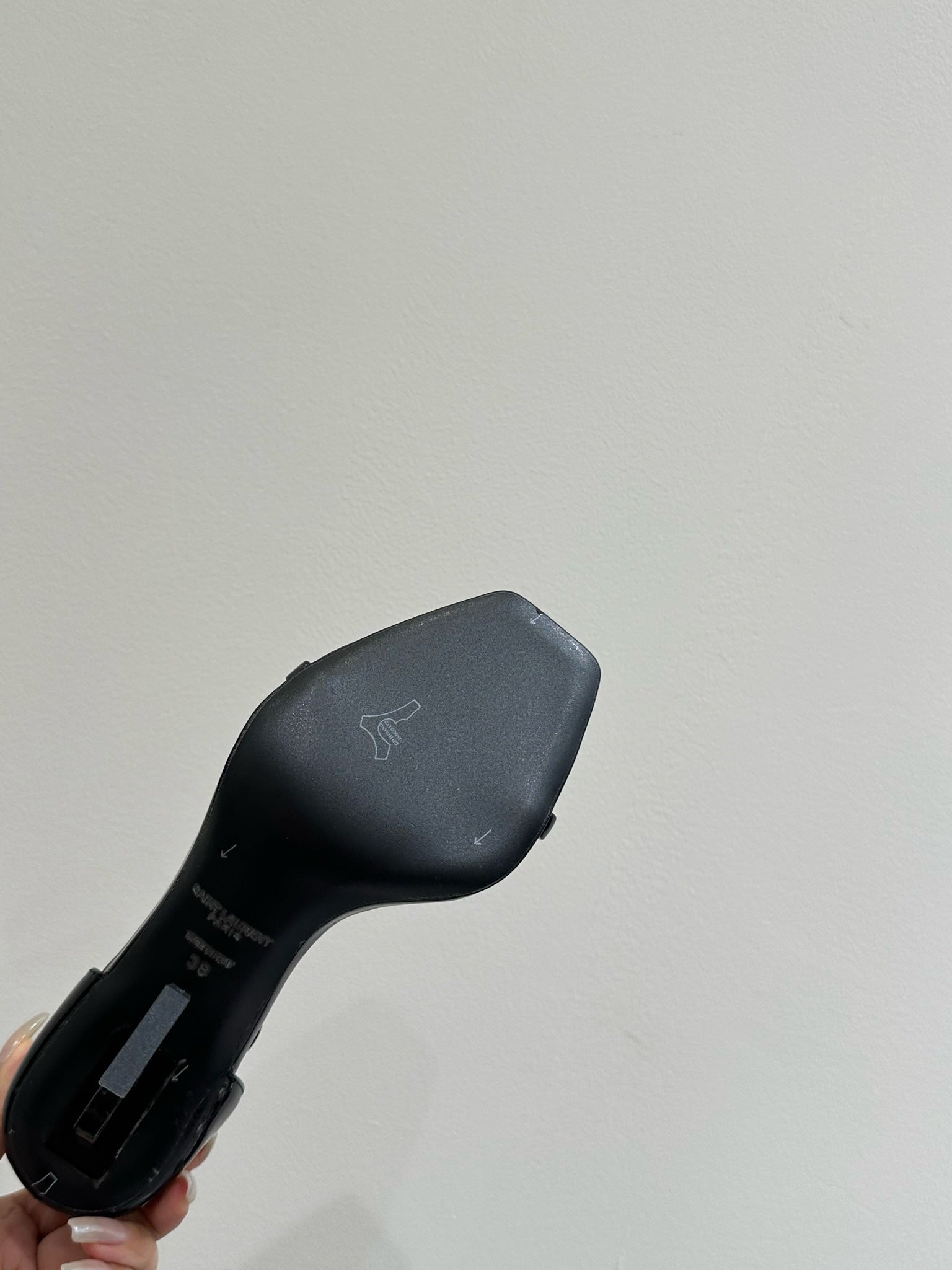 YSL HEELED SANDALS 25S 105 MM IN BLACK GLOSSY LAMBSKIN