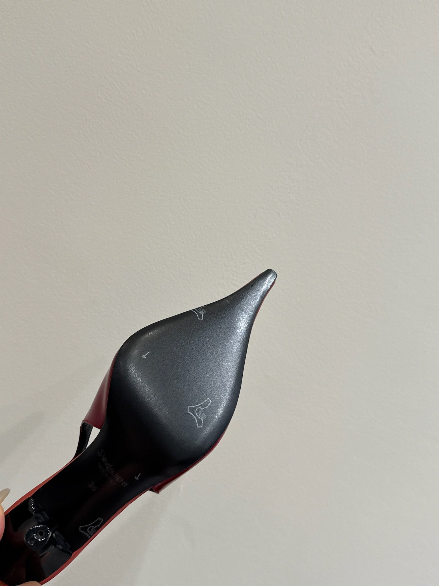 YSL HIGH SLINGBACK 25S IN DARK RED GLOSSY LAMBSKIN