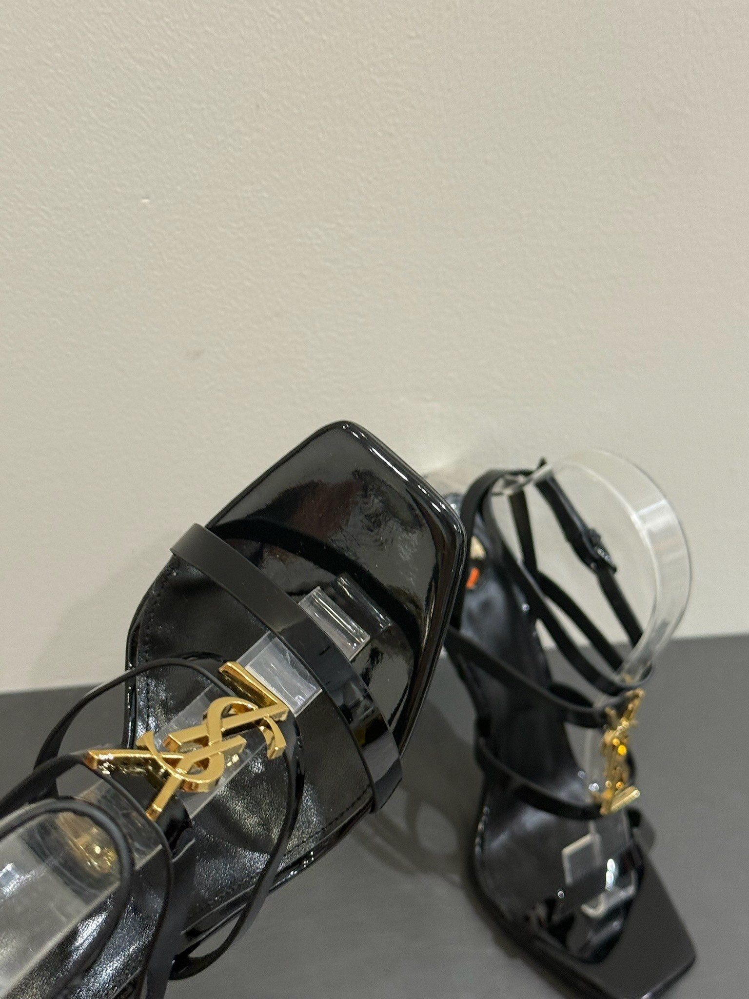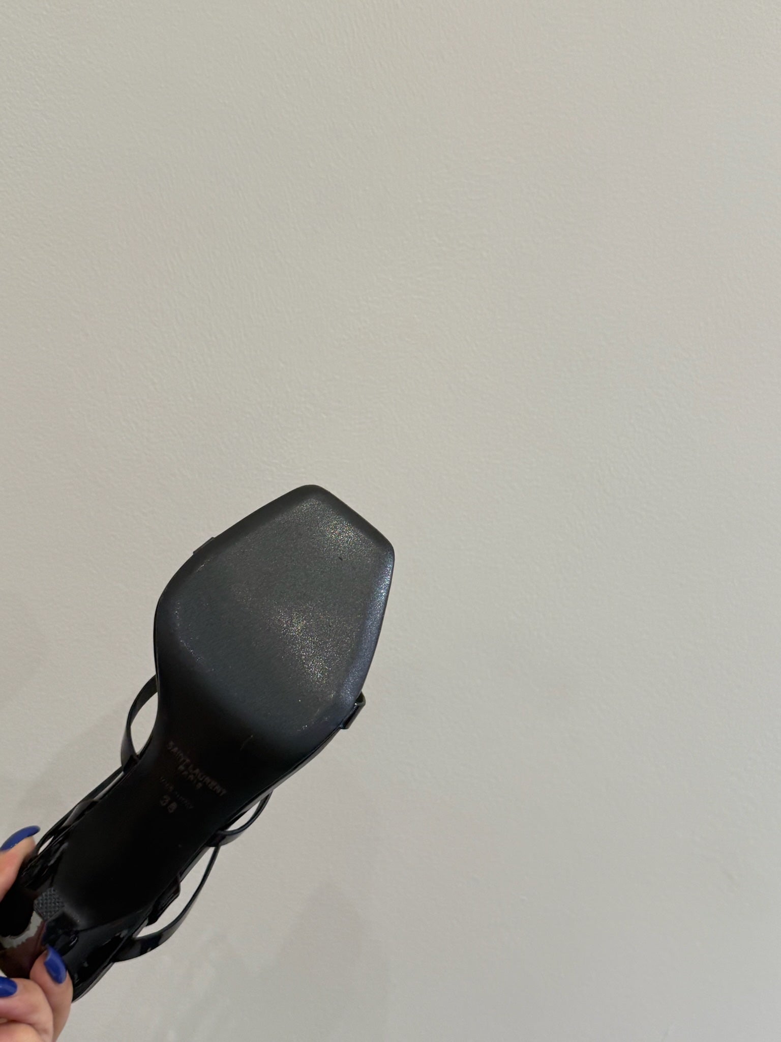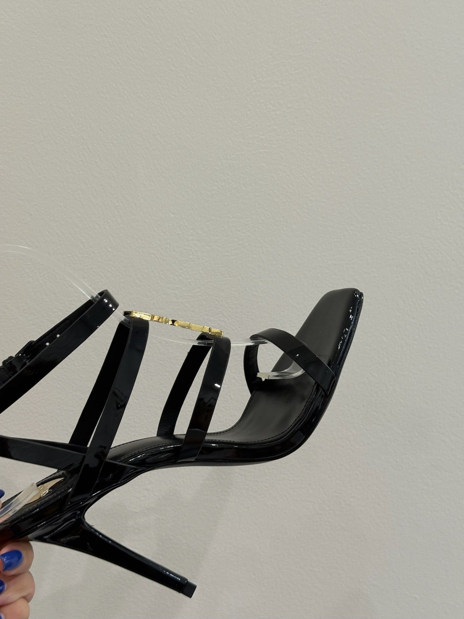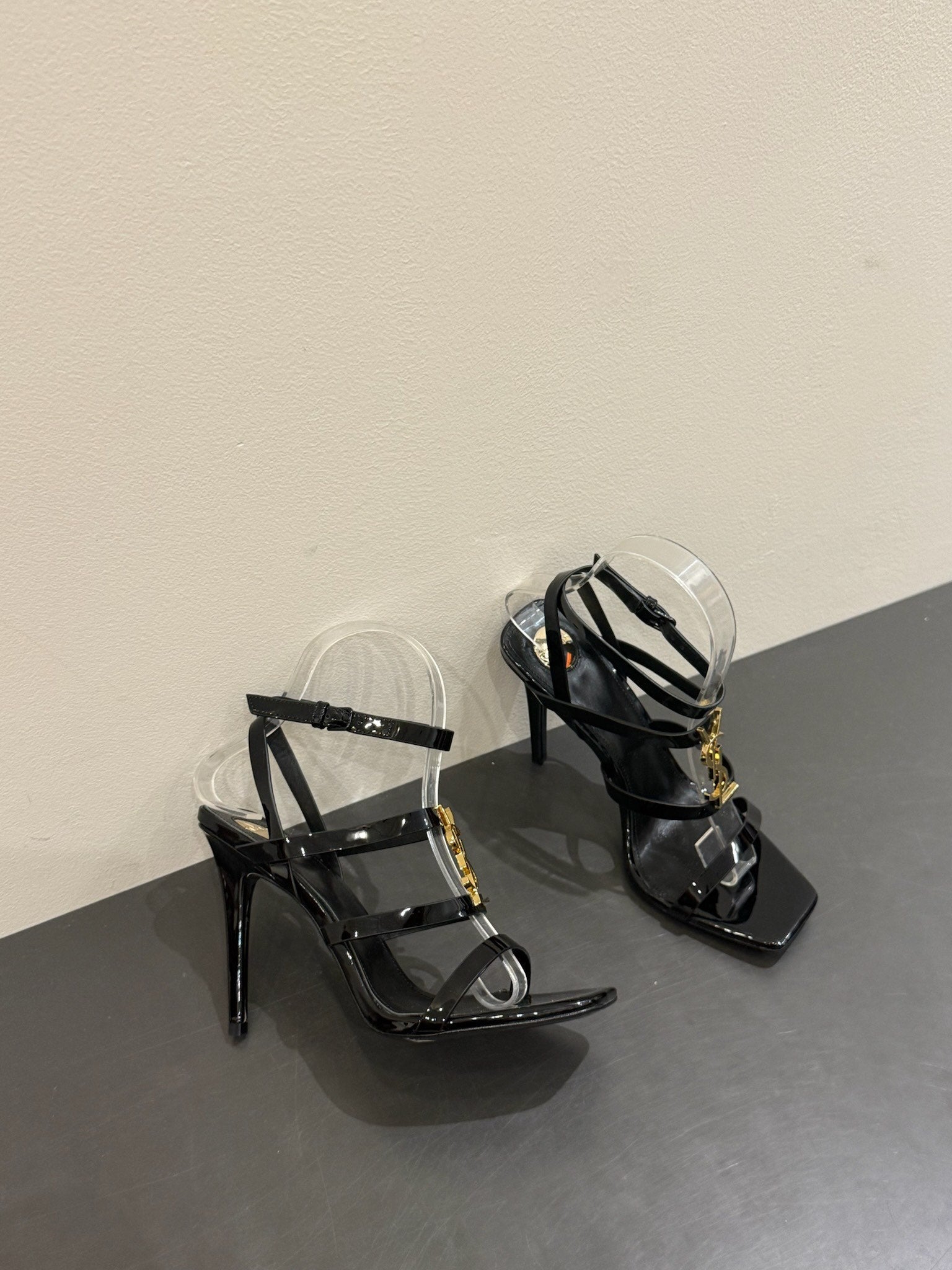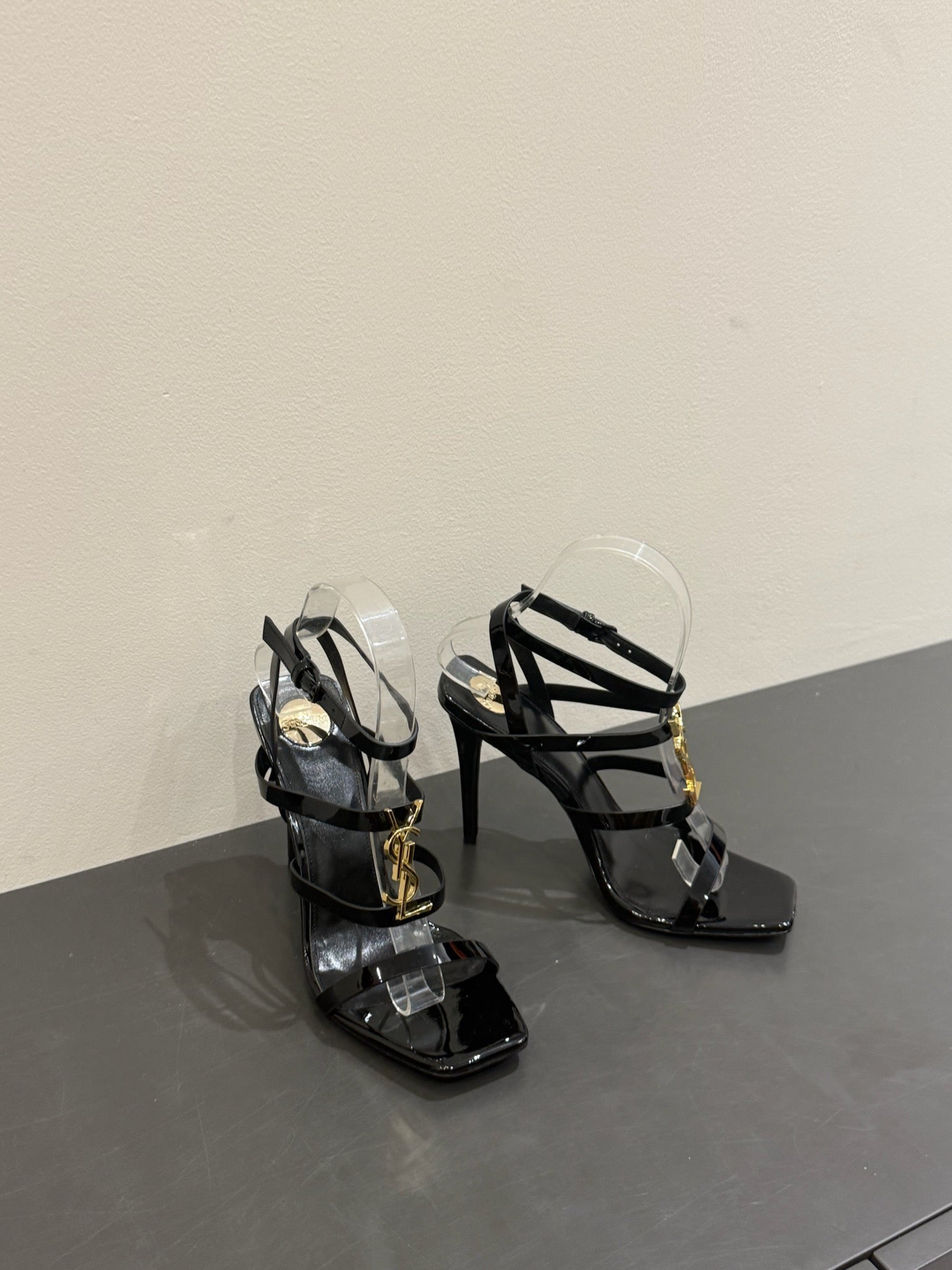 YSL SINGLE-STRAP HEELED SANDALS 25S IN BLACK LAMBSKIN