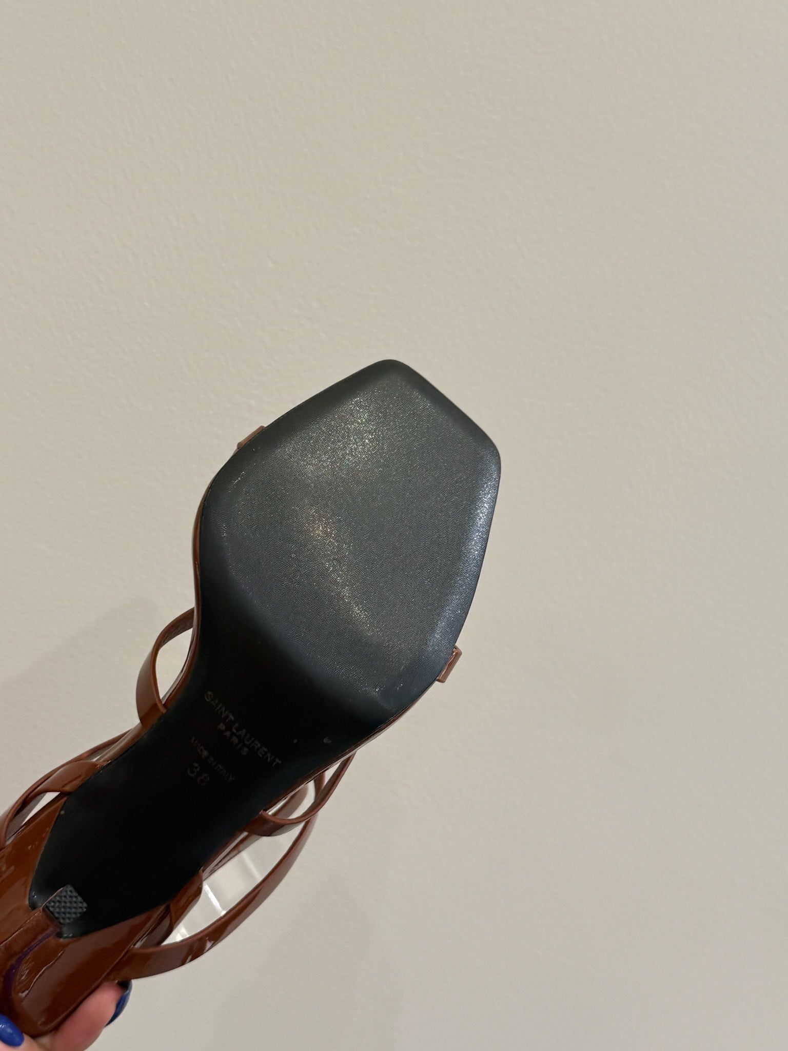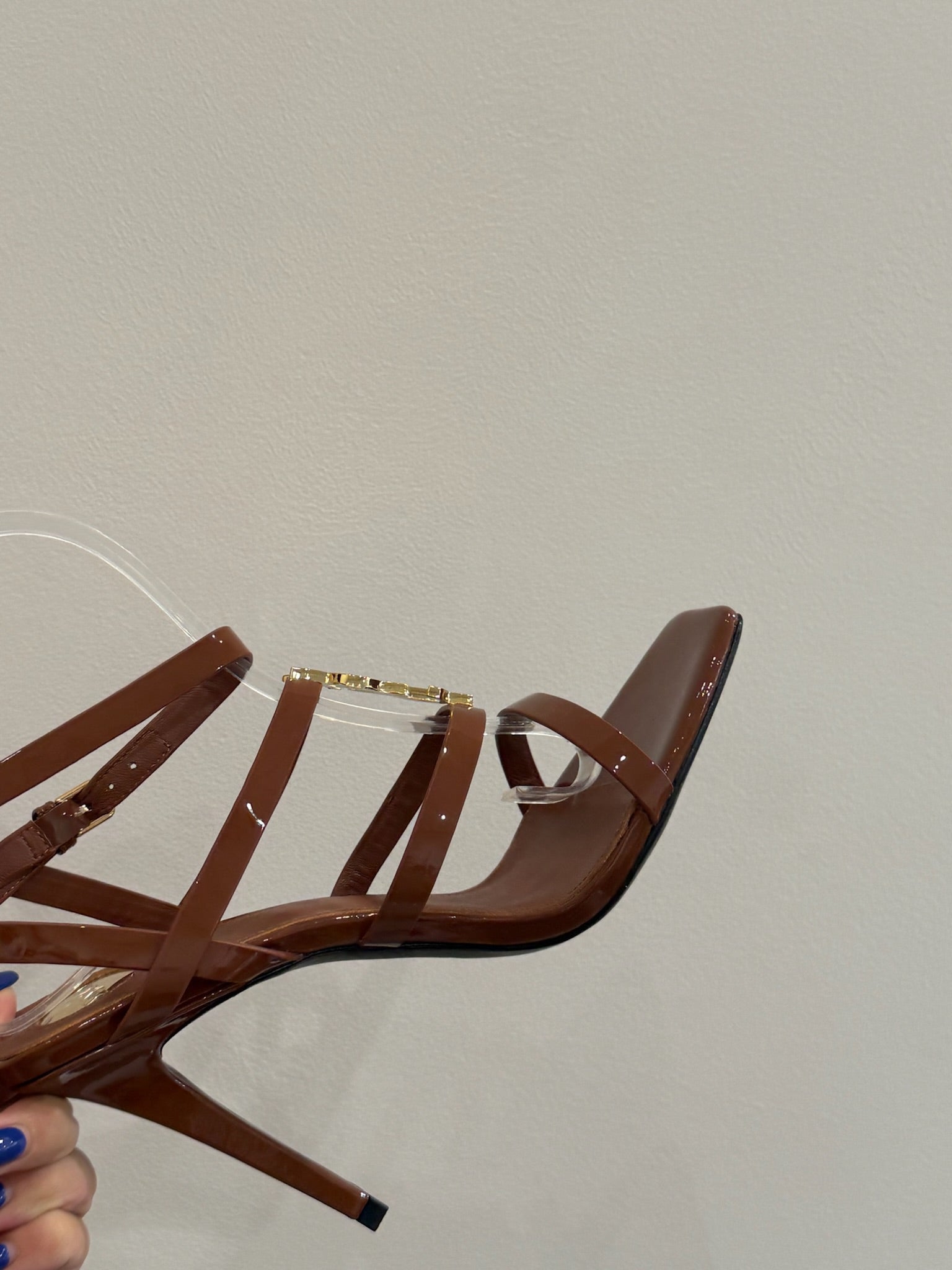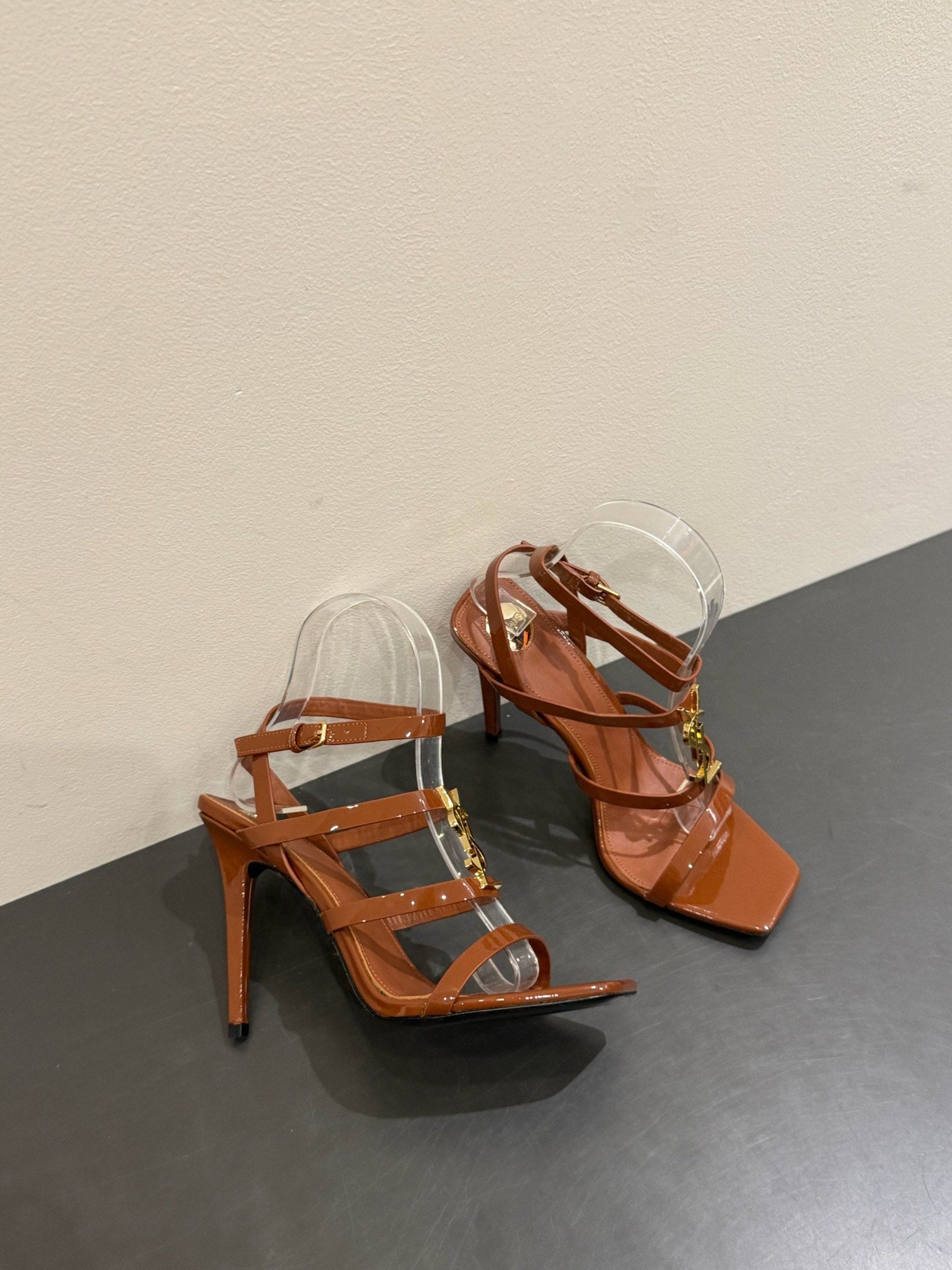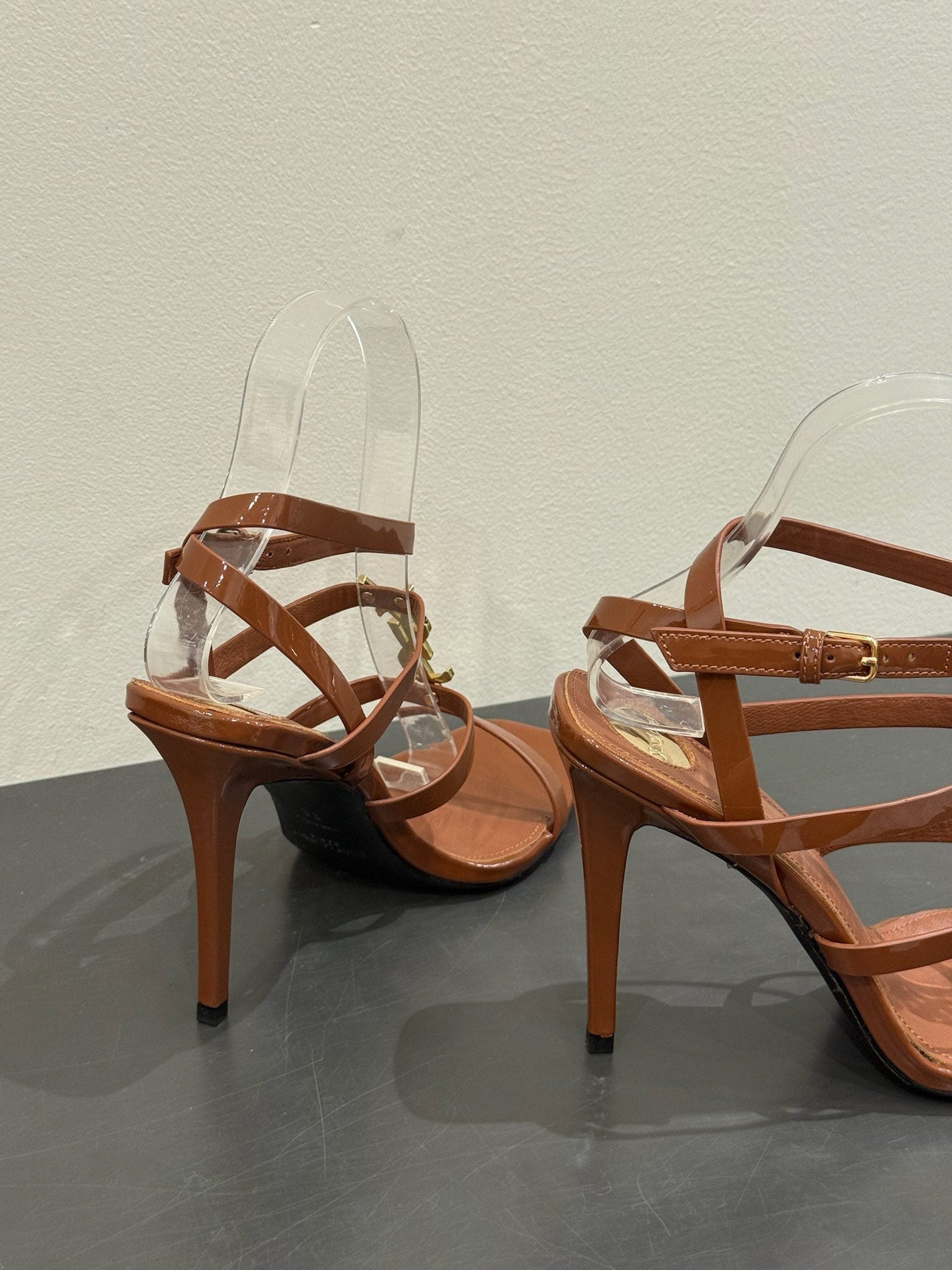 YSL SINGLE-STRAP HEELED SANDALS 25S IN BROWN LAMBSKIN