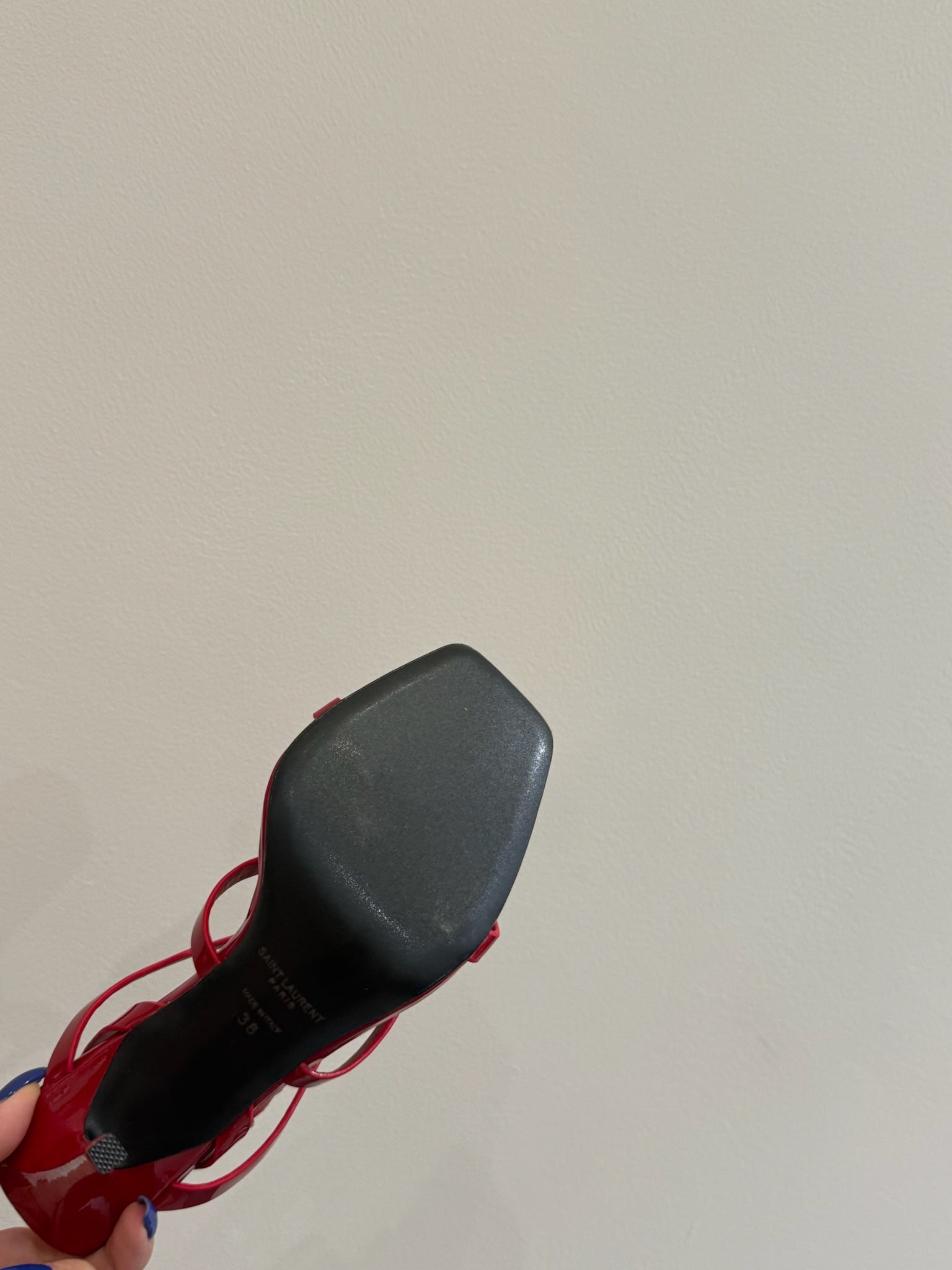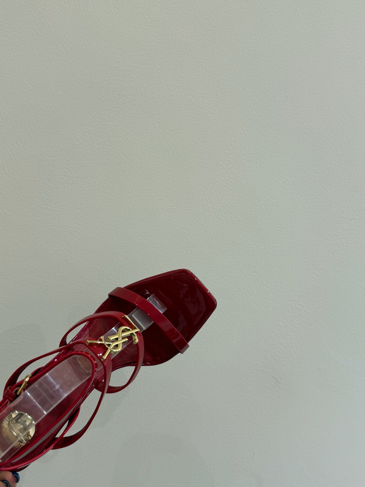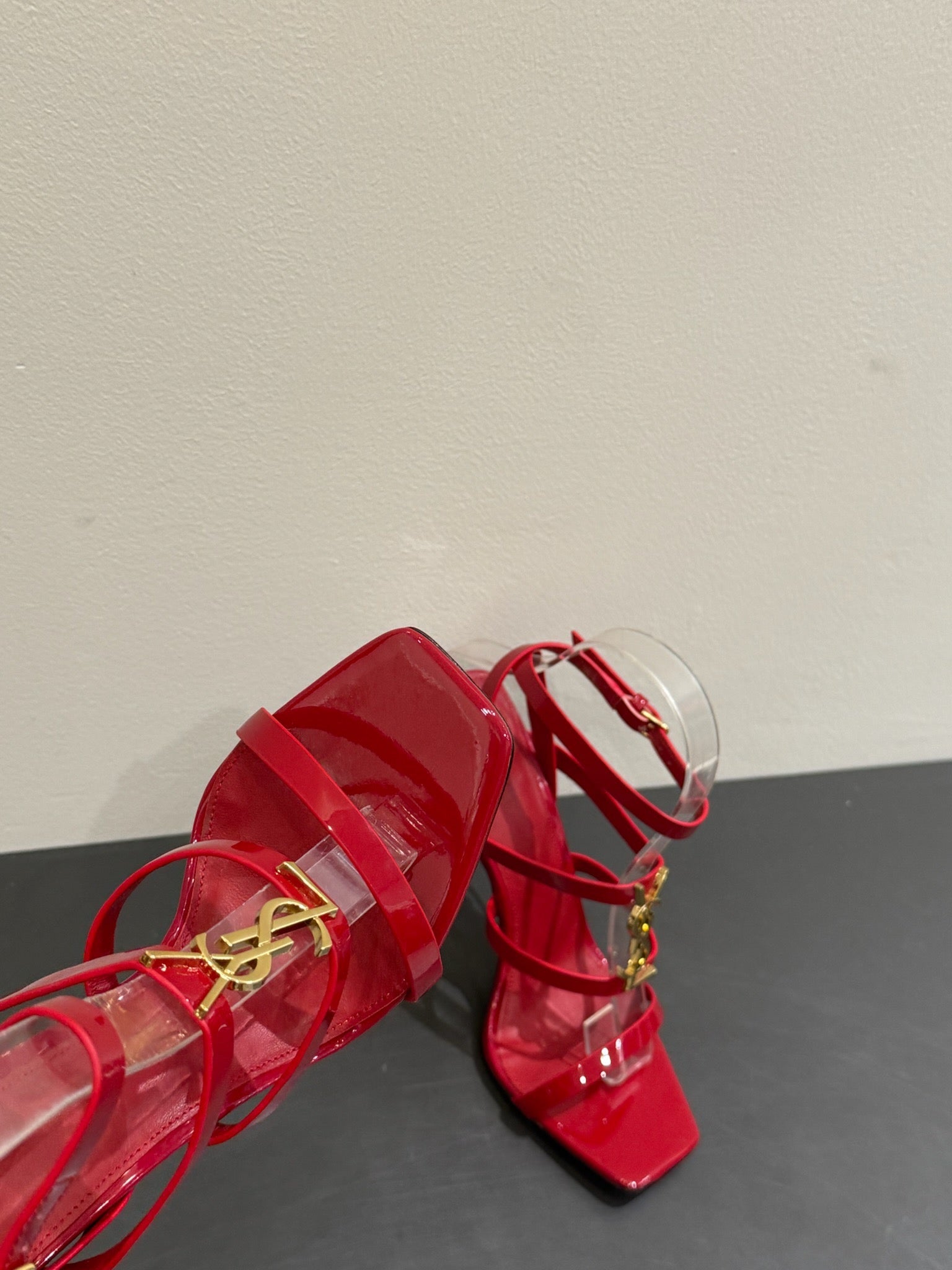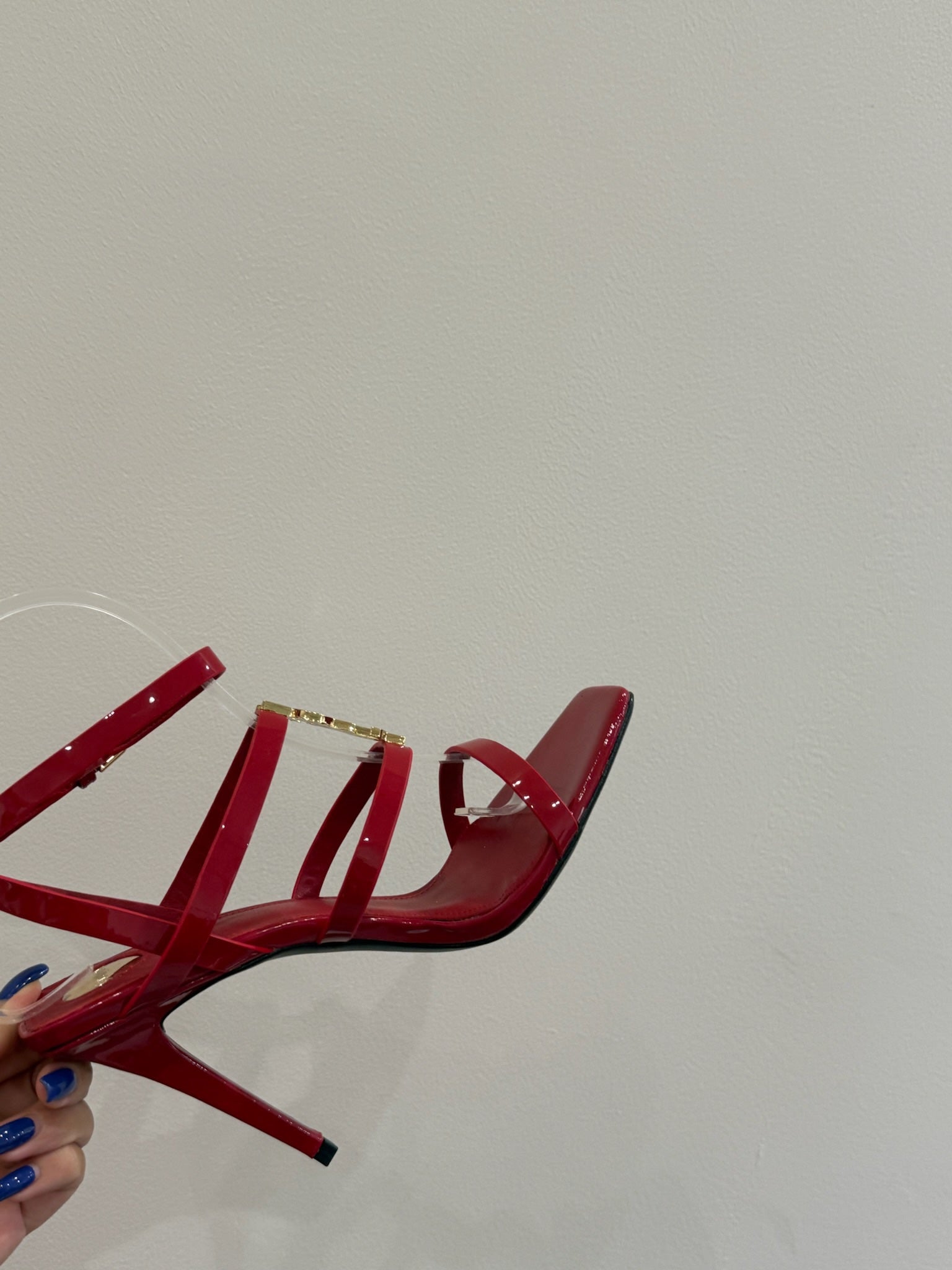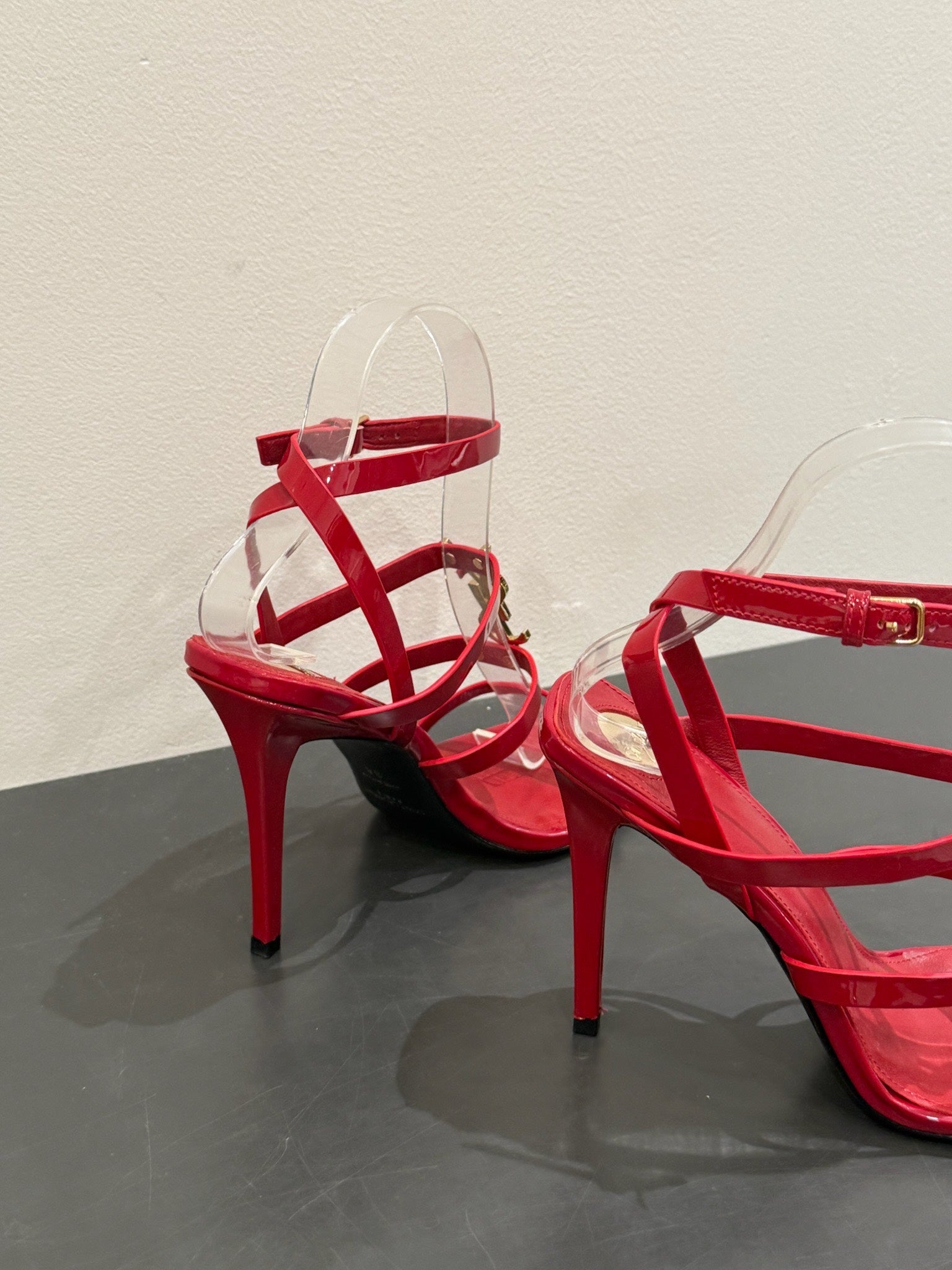 YSL SINGLE-STRAP HEELED SANDALS 25S IN RED LAMBSKIN