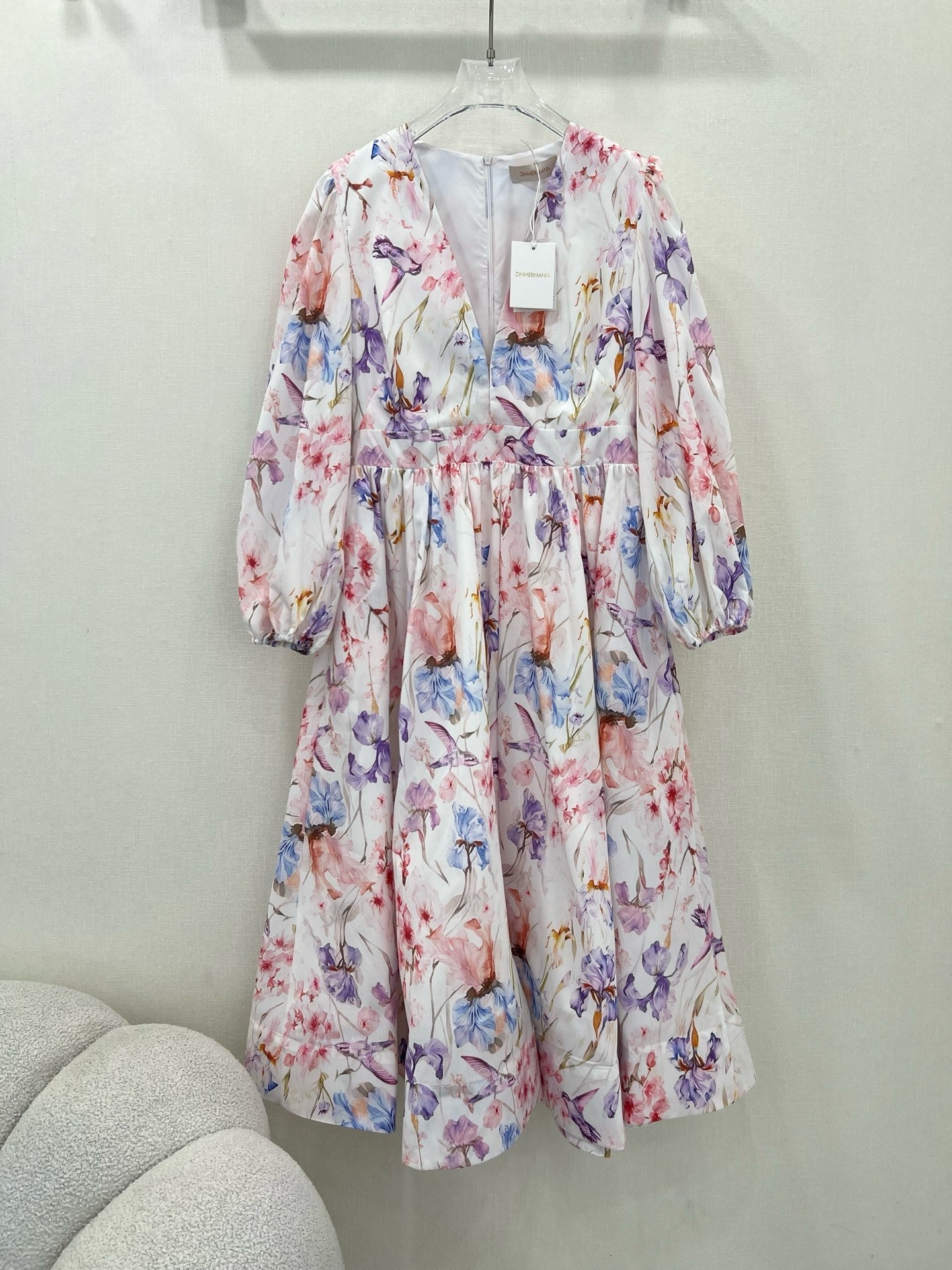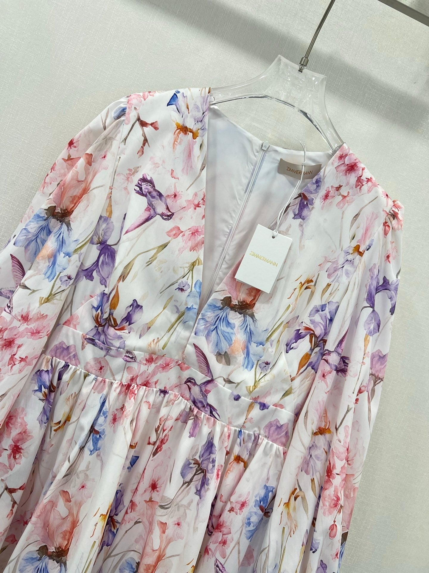 ZIMMER LONG-SLEEVE V-NECK DRESS 269296