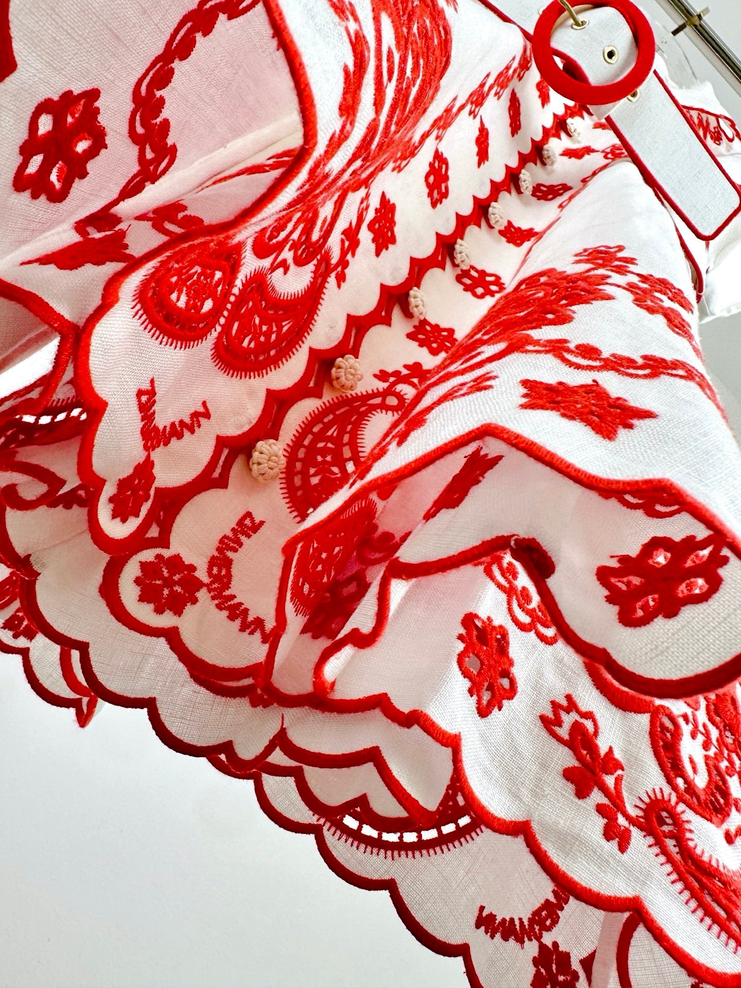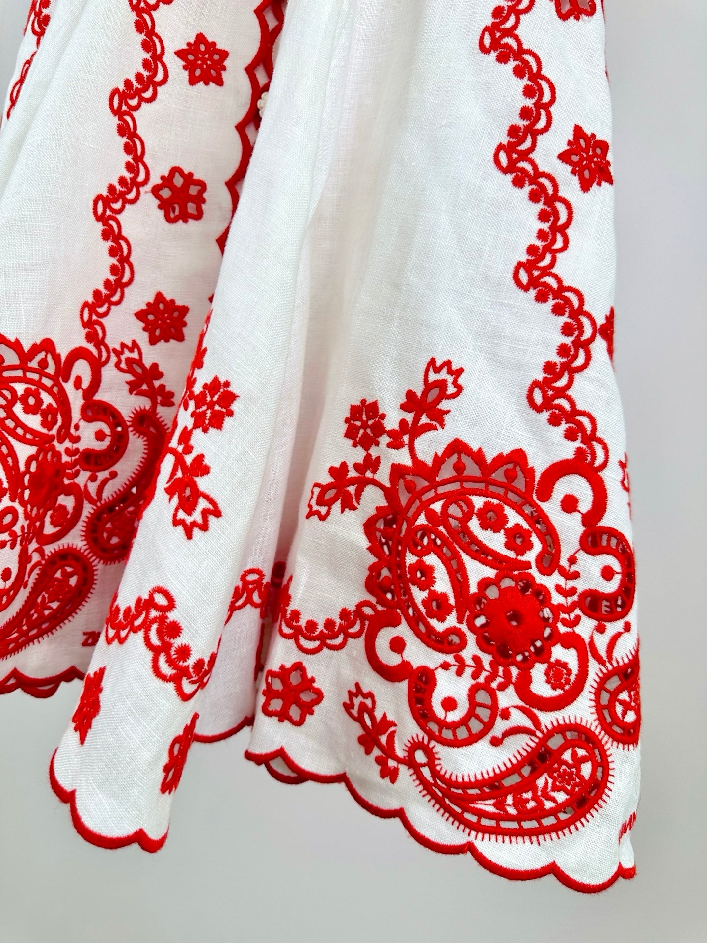 ZIMMERMANN EMBROIDERED SHORT-SLEEVE MINI DRESS 270267